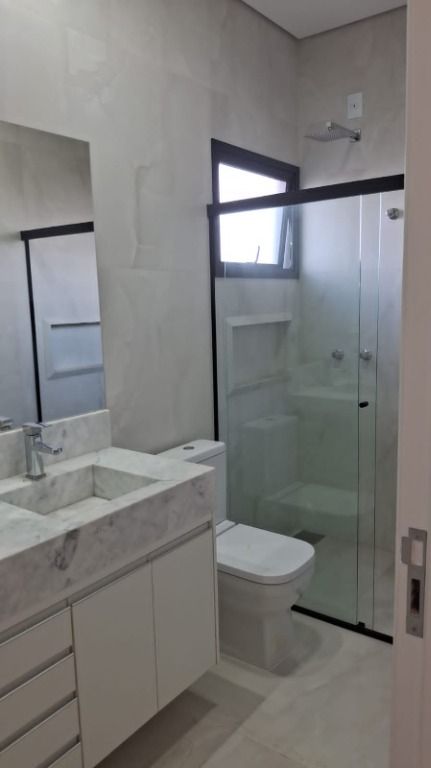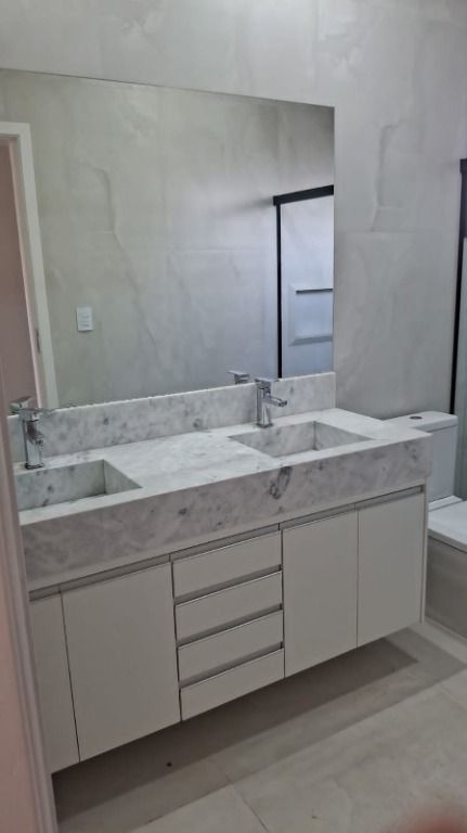 Excelente sobrado de 265m² com acabamento granito e porcelanato, 03 suítes, sendo 01 máster com closet, escritório, sala de tv/quarto no térreo, banheiro social, ampla sala de estar/jantar com pé direito duplo, cozinha, lavanderia, despensa, área gourmet com churrasqueira, quintal com piscina, banheiro externo e 04 vagas de garagem para carro, sendo 02 cobertas!Armários no closet, suítes, banheiros, escritório, cozinha, lavanderia, área gourmet e roupeiro no corredor!Cozinha com cooktop, forno 80L e coifa! Área gourmet com cooktop!Com aquecimento solar, energia fotovoltaica e preparada para ar condicionado!Aceita financiamento e estuda permuta por terreno em condomínio!Em condomínio fechado com excelente localização, portaria 24h, ampla área verde e área de lazer! Muito conforto para você e sua família!Entre em contato e saiba mais