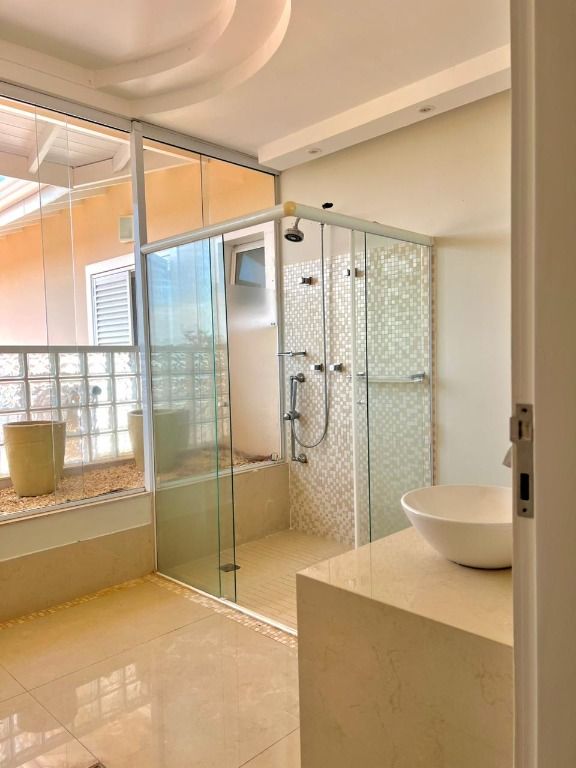 04 Suítes com ar-condicionado (inclui 01 master) - todas com varanda e portas balcão em alumínio. 03 Salas amplas, incluindo sala de TV acústica + sala reversível para dormitório extra, jardim de inverno + possibilidade de instalação de elevador. Cozinha planejada integrada a 2 ambientes + despensa e lavanderia. Área gourmet completa com churrasqueira. Piscina com cascata + sauna com vestiário e banheiro. Acabamento em porcelanato Portobelo em todos os ambientes, sistema de aquecimento a gás. Rica em móveis planejados, teto rebaixado e sancas de iluminação. Garagem para até 04 veículos.Estrutura do Condomínio:* Segurança 24h + portaria eletrônica + monitoramento em entregas.* Quadras de tênis, basquete, vôlei e futebol (grama sintética e campo)* Playground e pista de cooper* Academia ao ar livre*Salão de festas e churrasqueiras coletivas* Muito verde e áreas de convevênciaUm verdadeiro refúgio urbano: conforto para morar, exclusividade para investir e espaço para viver momentos únicos.Agende sua visita e venha conferir!!!!!